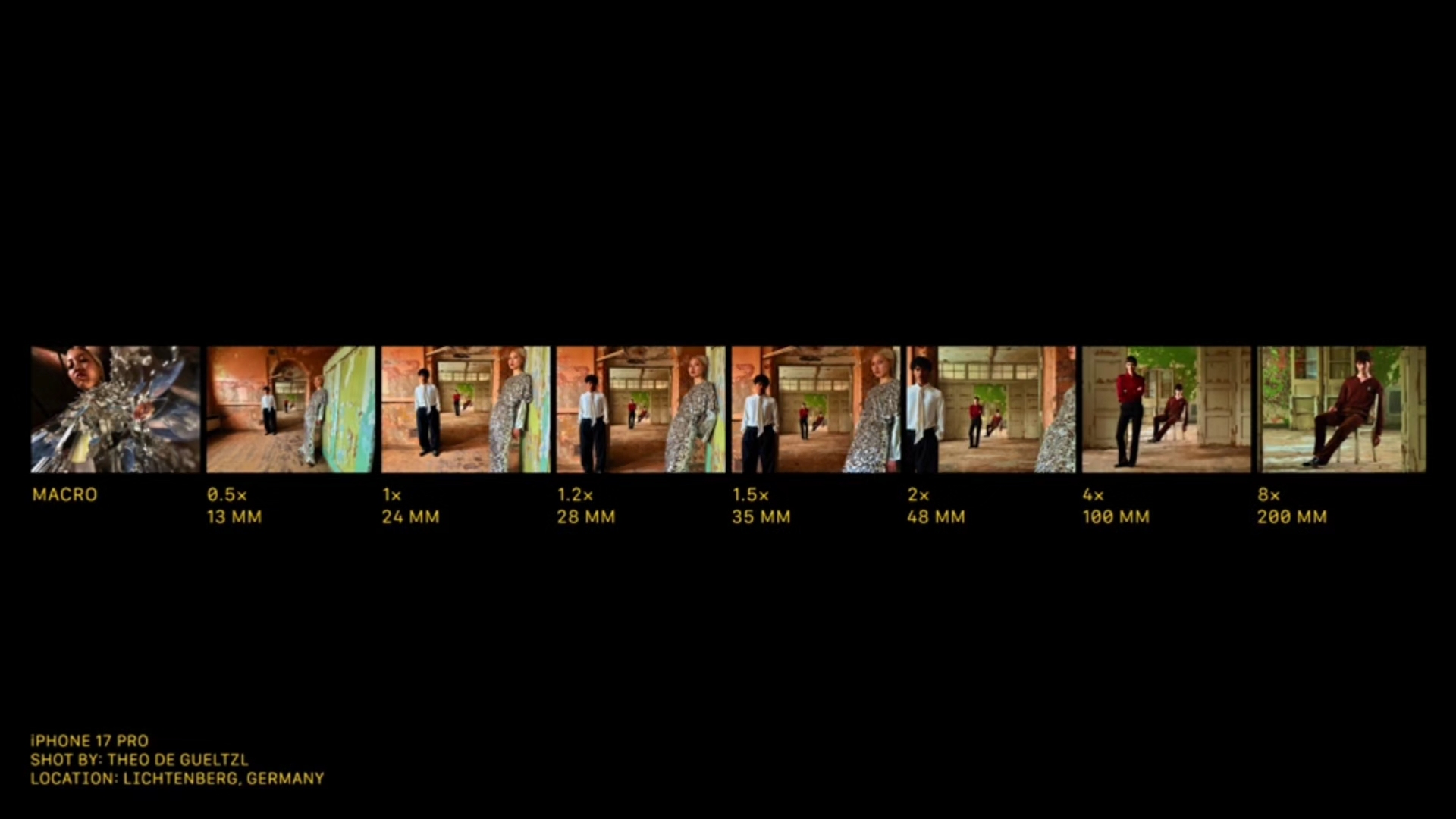 在影像功能上,iPhone 17 Pro系列背面的三颗摄像头全部升级至4800万像素,其中搭载的8倍长焦镜头也是iPhone迄今最长的长焦,最大等效焦距200毫米,采用新一代四重反射棱镜设计,并搭载增大56%的传感器。苹果在发布会上表示,使用iPhone 17 Pro系列约等于携带了8个专业镜头。