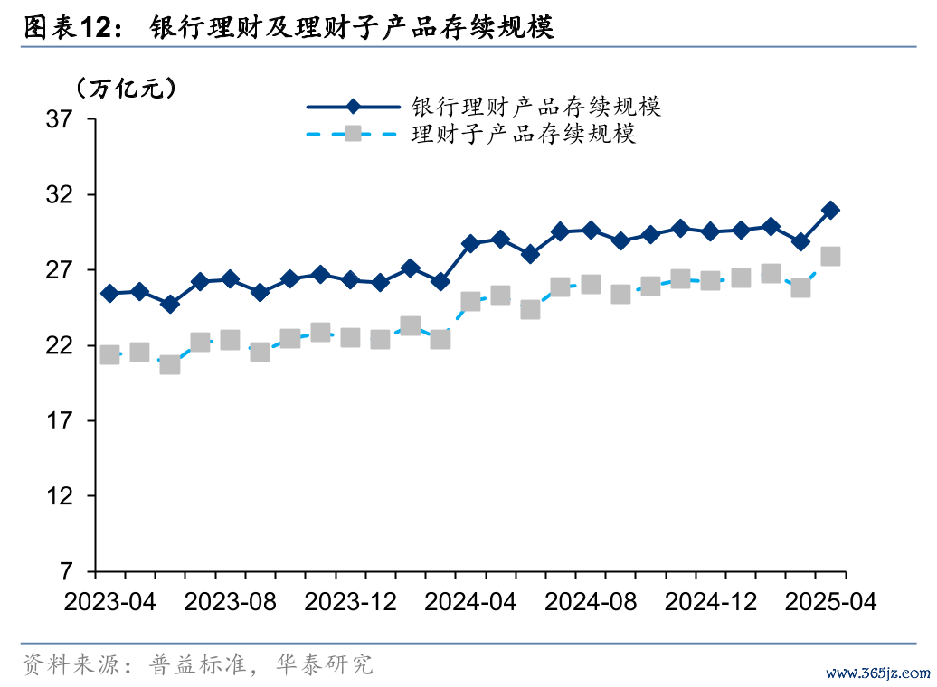 1) 银行理财:2025年4月全市场发行理财产品5985份,较3月环比-3.2%。理财子新发产品1957份,较3月环比-9.6%。4月末银行理财产品存续数量4.19万份,较前一月末+1.97%;存续规模30.95万亿元,较前一月末+7.15%。